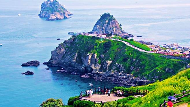 날씨가 좋은 날이면 멀리 대마도까지 보일 정도로 탁 트인 시야를 제공하며 일출·일몰 시간대에 방문하면 바다와 하늘이 뒤섞인 극적인 풍경도 감상할 수 있다. 많은 여행객들이 인증숏을 남기는 장소로도 유명하다.