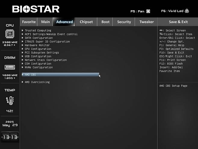 메뉴는 전체적으로 심플한 느낌이며, 메뉴 크기가 작기 때문에 다양한 메뉴들이 한눈에 들어온다는 장점이 있습니다. AMD 시스템인만큼 AMD CBS, 오버클럭 메뉴는 쉽게 확인할 수 있도록 분류 되어있습니다.