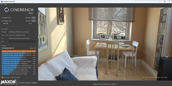 씨네벤치 R23의 점수는 멀티 16379 포인트 / 싱글 2170 포인트인데 오버클럭을 하지 않아도 AMD 9600X 기본 클럭 평균 보다 살짝 더 높은 점수 확인이 가능했습니다.