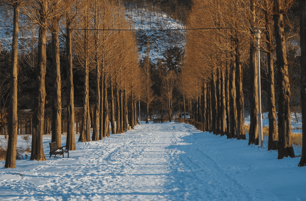 이른 새벽, 사람들이 적을 때 방문하면 더욱 여유롭게 사진을 남길 수 있는데요. 주변 소음 없이 차분한 분위기 속에서 자연과 어우러진 특별한 풍경을 만날 수 있습니다. 메타세콰이어의 높고 곧은 줄기와 바닥에 쌓인 눈의 대비는 카메라에 담기에 더할 나위 없이 완벽한 장면을 만들어줍니다.