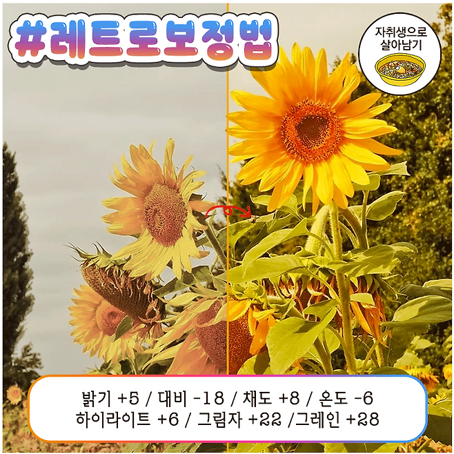 노출 ↑, 채도 ↑, 생동감 ↑
