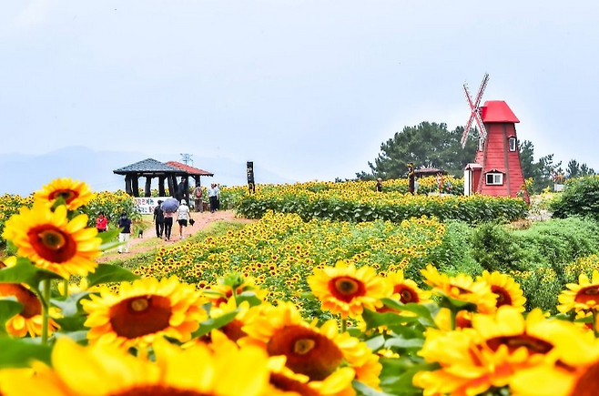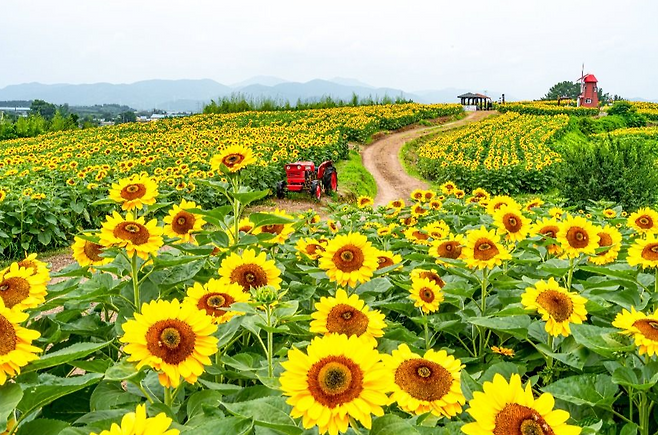 해바라기 꽃밭: 약 4만2,500㎡ 규모! 마을 전체가 노란 해바라기로 물드는 장관