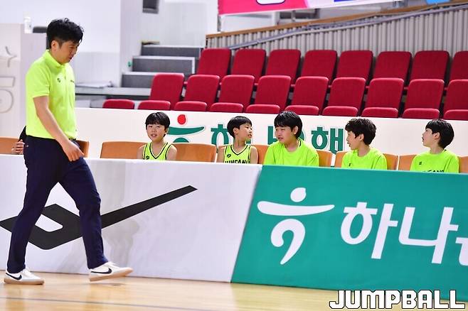 중앙초는 8강 전주송천초와 경기에서 형광색 유니폼을 입었는데, 김동우 코치 또한 형광색 카라티를 입고 선수들과 함께 했다.