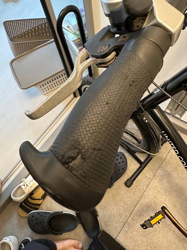 중고 자전거 샀는데 핸들 손잡이 고무가 녹았네요