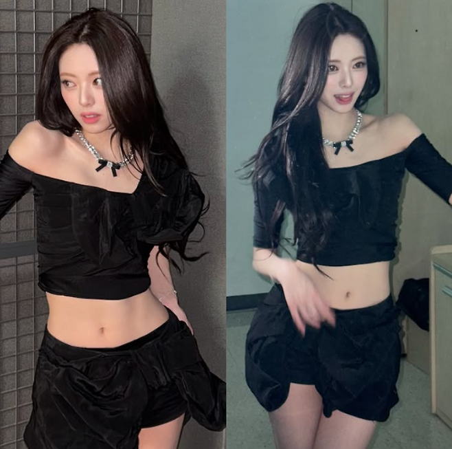 최근 유나는 블랙 컬러의 오프숄더 크롭톱과 쇼츠로 구성된 심플하면서도 임팩트 있는 룩으로, 그녀 특유의 세련된 무드와 완벽한 실루엣이 빛난 스타일을 보여줬어요.