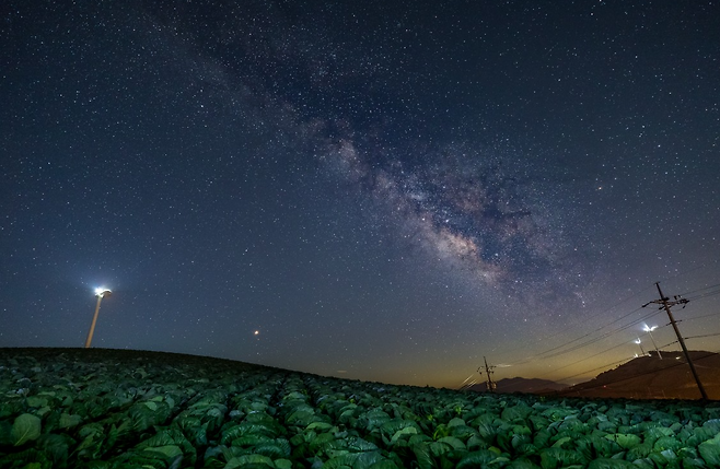 강릉의 안반데기는 한국의 은하수 성지로 손꼽히는 곳입니다. 안반데기는 전국 최대 규모의 고랭지 채소 단지로, 해발 1,100m의 고원 마을입니다. 불빛의 방해가 적고 대기가 맑아 별을 선명하게 볼 수 있으며, 사방이 탁 트여 은하수를 촬영하기에도 좋습니다. 마을까지 자동차로 이동할 수 있어 최근에는 사진가뿐 아니라 은하수를 보려는 일반인의 발길이 끊이지 않습니다. 해가 지고 어둠이 내려앉으면, 다음 날 아침 해가 뜰 때까지 별을 볼 수 있습니다.