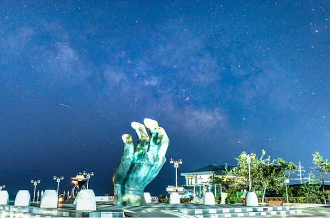 정동진과 함께 대표적 새해 일출 명소로 알려진 포항의 호미곶은 은하수를 보기에도 좋은 곳입니다. 은하수는 동남쪽에서 떠오르기 때문에 새해 일출로 유명한 곳이면 어디든 은하수를 관측할 수 있습니다. 해맞이광장에 위치한 조각상 ‘상생의 손’은 은하수를 촬영할 때도 유용한데, 마치 상생의 손이 은하수를 잡으려는 듯한 독특한 장면을 사진으로 담을 수 있습니다. 은하수를 관측한 뒤 일출까지 볼 수 있다는 점에서 더욱 더 매력적인 여행집니다.