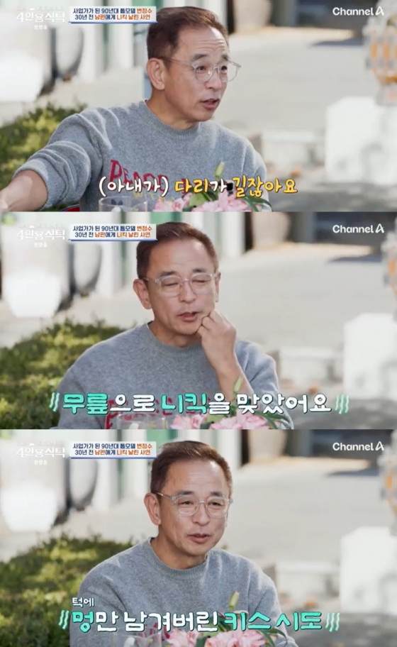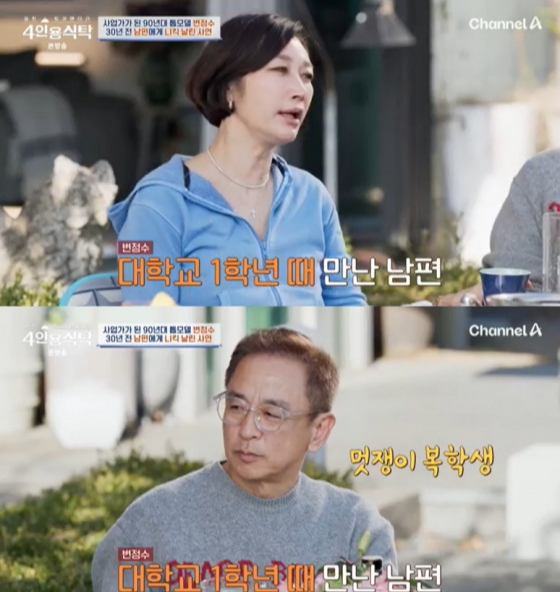 변정수는 20세, 대학 1학년 시절 남편을 처음 만났다. 당시 복학생이었던 남편은 기타리스트 손무현을 닮은 훈훈한 외모의 미대 오빠였다.