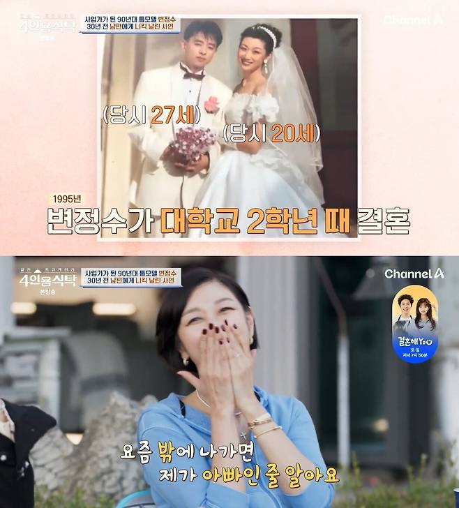 변정수는 “결혼을 후회한 적은 없다”며 “아이들을 키우며 요리를 시작했고, 남편 덕분에 인생의 전환점도 맞았다”고 말했다.