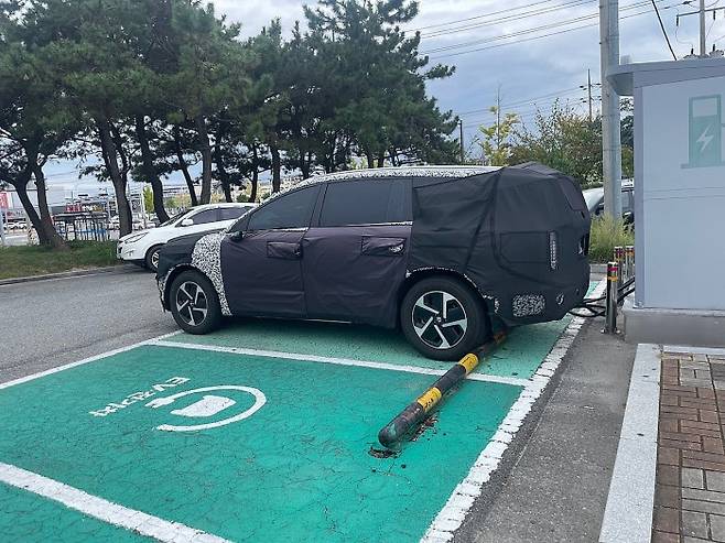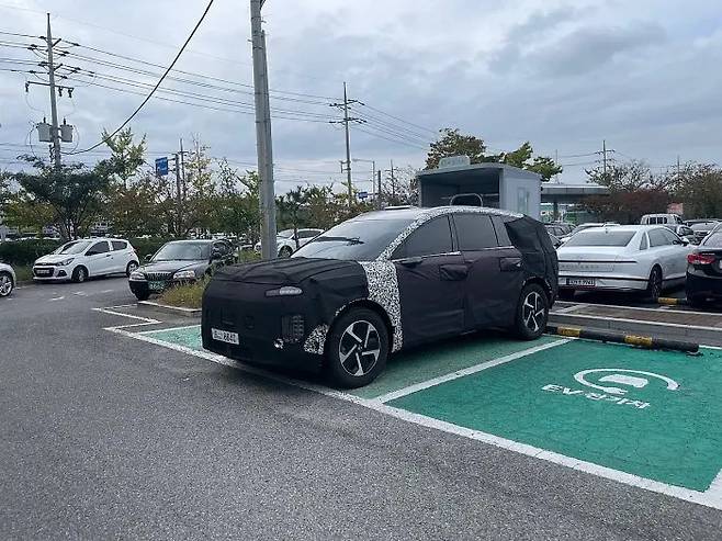 현대차 3열 전기 SUV 아이오닉 7이 카메라 사이드미러를 장착한 채 포착됐다.