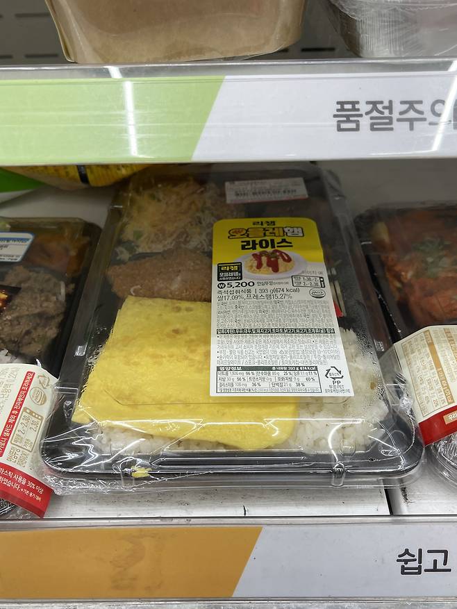 오므라이스에 햄, 체다치즈, 콘까지 짭짤한 재료가 들어있어 먹을 때 생수가 필요해요. 간 세게 드시는 분께만 추천해요.