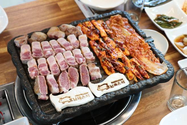 그중에서도 구운 묵은지는 그야말로 일품이다. 고기에서 나온 기름기로 한층 고소하게 구워진 묵은지를 삼겹살과 함께 싸 먹으면, 고소하고 육즙이 풍부한 고기와 묵은지의 새콤한 맛이 어우러져 궁합이 좋다.
