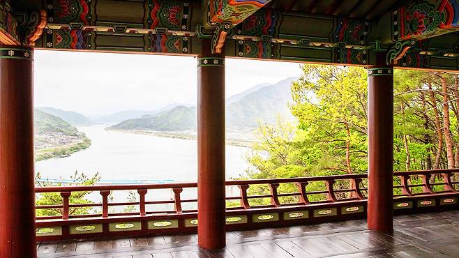 특히 정자의 기둥과 지붕 라인을 액자 삼아 바라보는 낙동강의 곡선미는 자연이 그린 한 폭의 진경산수화와 같습니다.