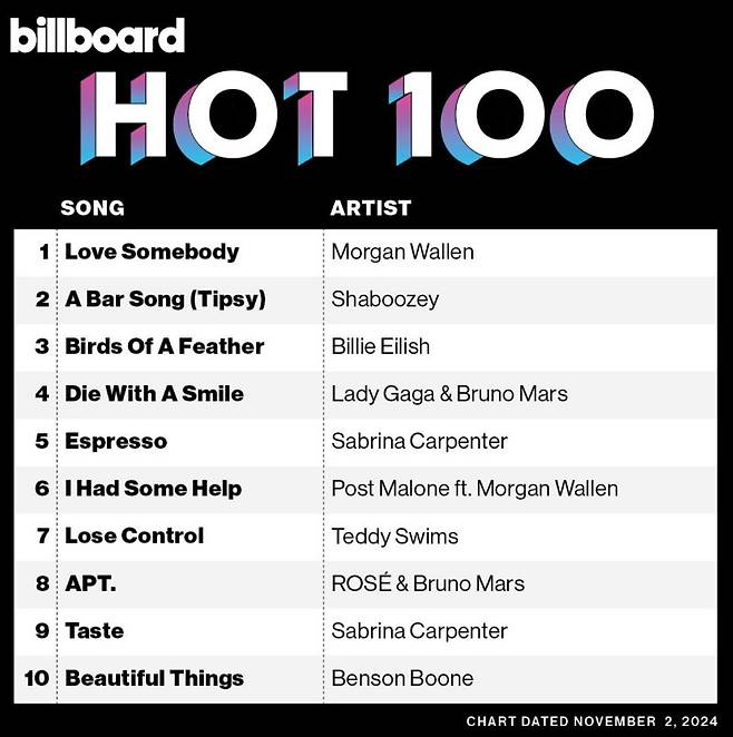 로제 & 브루노 마스 '아파트', 미 빌보드 '핫 100' 8위! 케이팝 여성가수 최고층 진입!