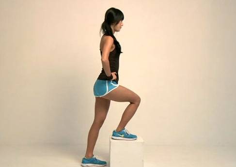 의자나 박스 위로 한 발씩 올라가며 엉덩이와 허벅지 뒤쪽을 자극합니다.