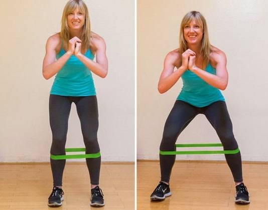 무릎 위나 발목에 밴드를 걸고 옆으로 이동합니다.