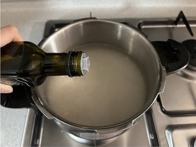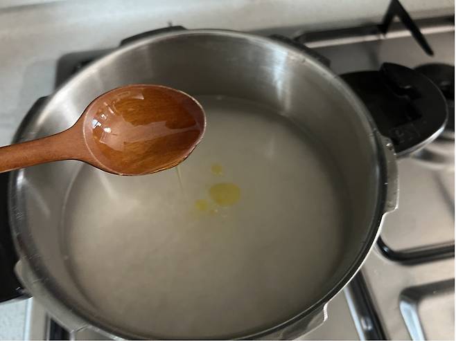 밥 지을 때 맹물만 넣지 말고 식물성기름을 조금 넣어주세요