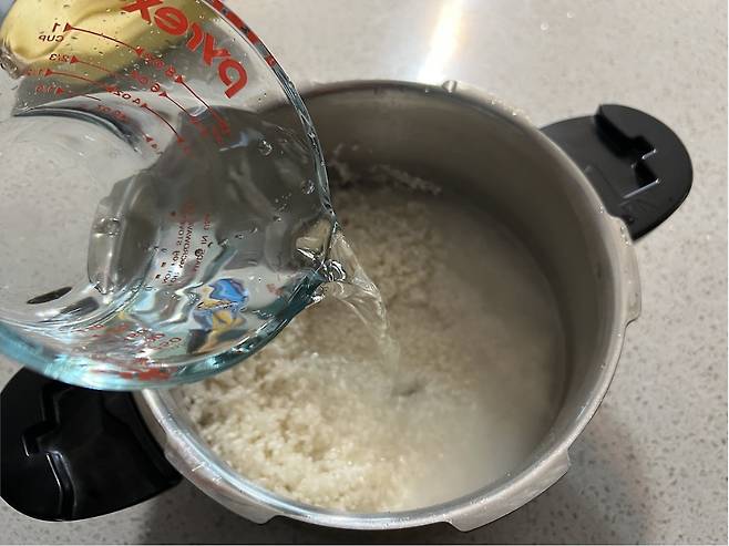 쌀을 씻었다면 이제 물을 맞춰주세요