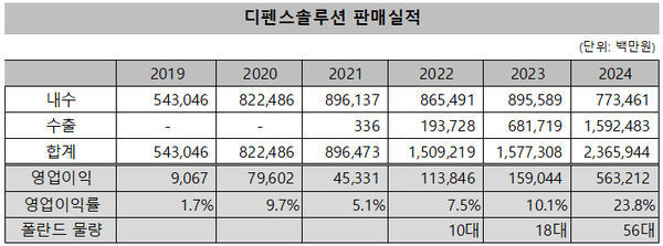 현대로템이 폴란드로 K2전차를 수출한 첫 해는 2022년이다. 이전까지는 방산부문 수출이 미미했던 것을 감안하면 수출 직전 3년(2019~2021년), 수출 진행 후 3년(2022~2024년) 평균을 비교하면 수출 가격을 추산할 수 있다.