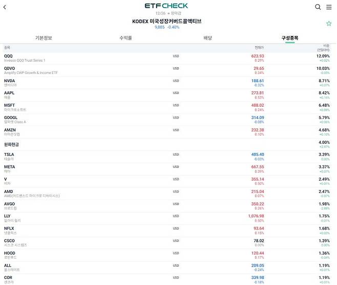 코미액이 '디보'의 한국판이라고 한다면 이번 미국성장커버드콜액티브는 한국판 'QDVO'입니다.