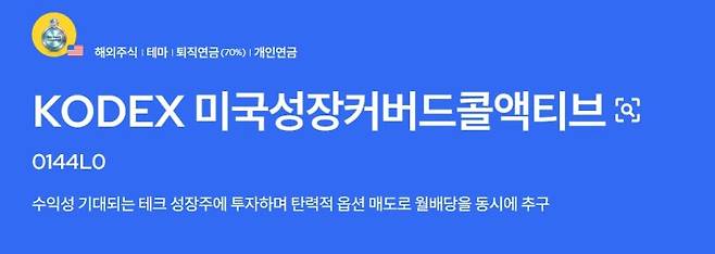 이 가운데 삼성자산운용이 K디보의 형제격인 ETF인 KODEX 미국성장커버드콜액티브(0144L0)를 최근 상장해 화제를 모으고 있습니다. 기존 '코미커'는 미국 배당주와 가치주가 중심이었다면 이번 '미성커'는 나스닥 기반 기술주 및 성장주를 기반으로 한 월분배 커버드콜입니다.