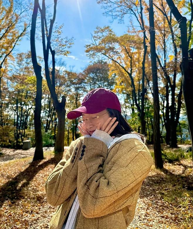오버핏 자켓에 레드캡 데님팬츠, 안경을