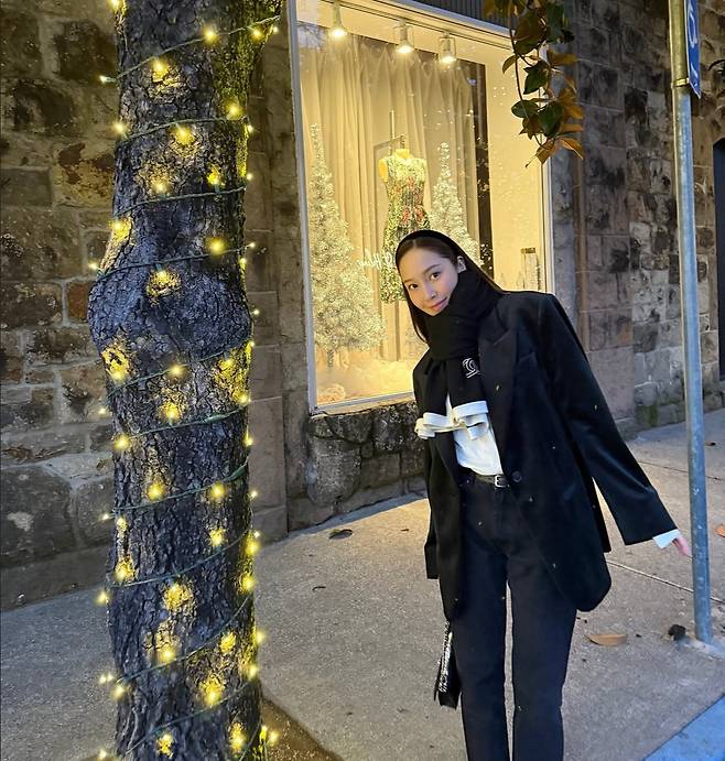 제시카 샤넬 목도리에 데님팬츠, 자켓으로