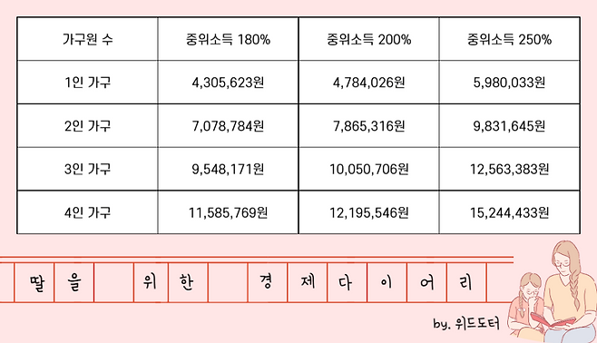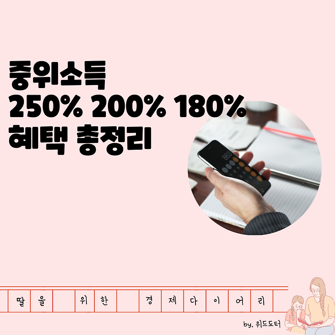 오늘은 중위소득 250%, 200%, 180%에 대한 혜택을 총정리해 볼게요. 저도 최근 중위소득 기준에 따라 받을 수 있는 혜택에 대해 궁금해하면서 이 주제를 다루게 되었답니다.