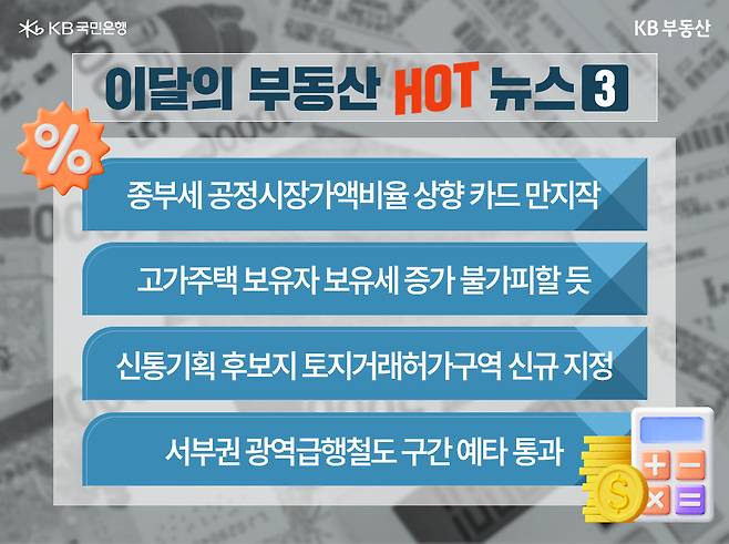 지금까지 7월 부동산 시장 핫이슈를 모아 봤습니다. 8월에는 정식 세법 개정안 발표로 인한 영향을 주시해야 할 것으로 보입니다. 8월 부동산 시장도 KB부동산과 함께 해 주시기 바랍니다.