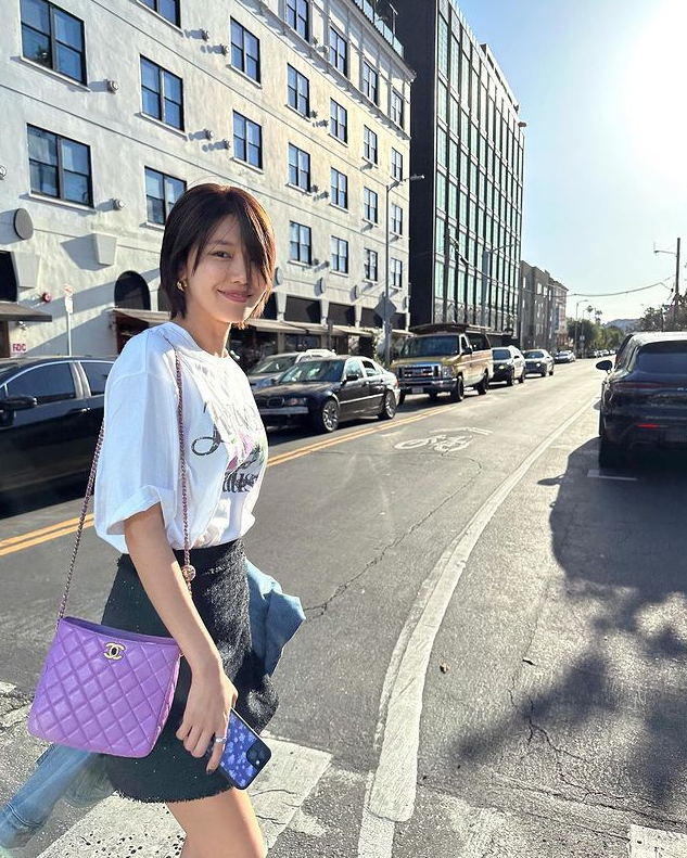 소녀시대 수영이 인스타그램에 공개한 미국 여행 근황 속 패션이 화제를 모았다.