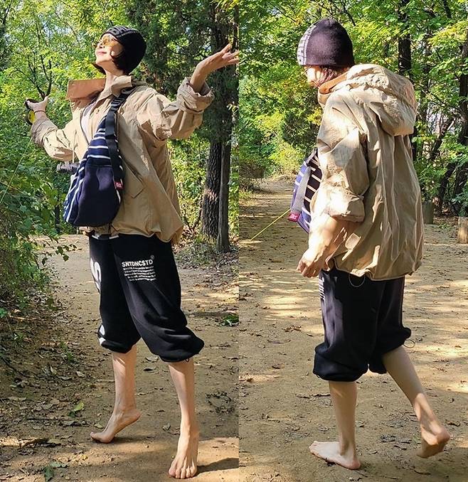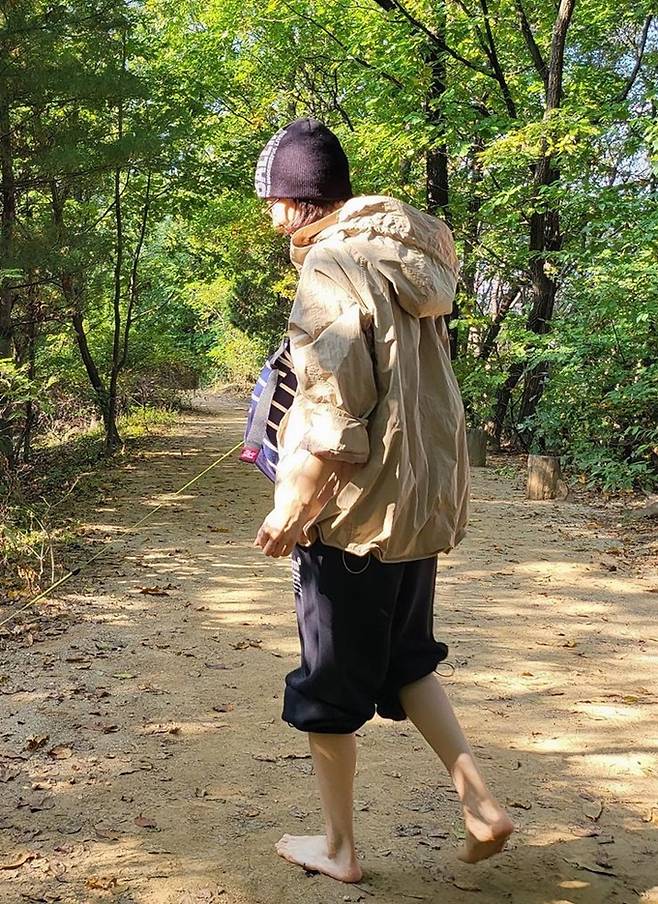 그러나 이후 “힉…아코코…발바닥 너무 아프다. 한걸음 한걸음 ‘신발’을 애타게 찾았던 나의 첫 맨발걷기”라고 글을 올려 웃음을 자아냈다.