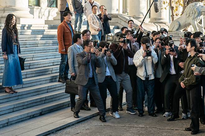 이에 반해 표정 변화가 거의 보이지 않아 속마음을 짐작하기 어려운 ‘모은’(김고은)의 스틸은 미스터리한 분위기를 한층 더한다. 법정과 취조실에서도 변함없는 무표정을 유지하는 ‘모은’은 ‘마녀’라 불리는 그의 정체에 대한 호기심을 자극한다.
