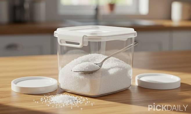 설탕은 음식물 냄새에 반응해 탈취 효과를 낸다. 물에 설탕을 녹인 뒤 김치통 안을 닦거나 헹궈주면 매운 냄새가 줄어든다. 약간 끈적한 느낌이 남을 수 있으니 물로 한 번 더 꼼꼼히 헹궈주는 게 좋다.