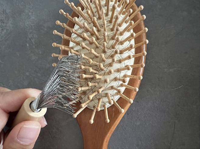 이것도 헤어브러시 클리너로 슥슥 긁어만 주면 머리카락이 엄청 쉽게 빠져요