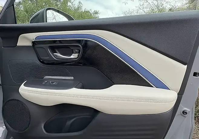 특히 후방 도어 패널에서 명백한 비용 절감 조치가 드러나고 있다. 전면 패널의 트림이 없을 뿐만 아니라 혼다 H-RV에서 사용된 것과 정확히 동일하다. 시승차량인 A-Spec 모델의 흰색과 파란색 스웨이드 트림은 상당히 어색해 보인다는 평가다. 흰색과 파란색의 조합은 조화를 이루기 어려운 색상 조합으로, 폭스바겐이 ID.4에서 보여주는 방식이 더 적절하다는 비교 의견도 나왔다.