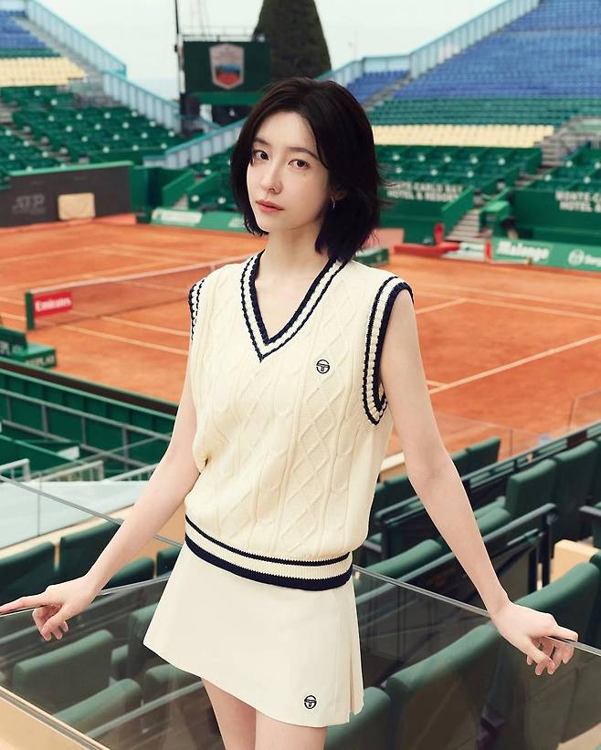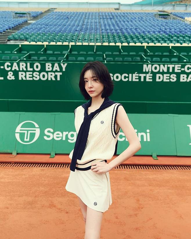 클래식한 스포츠웨어의 정수를 보여주는 박지현의 테니스 패션이 화제다. 최근 공개된 인스타그램 속 그녀는 모나코 몬테카를로의 테니스코트를 배경으로 브랜드 ‘세르지오 타키니(Sergio Tacchini)’의 테니스룩을 완벽하게 소화하며 시선을 사로잡았다.