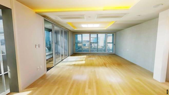 안방 베란다가 존재한다는 점을 기억하고 봐주세요! 실제 안방 면적은 50평대 아파트라고 하기엔 넓지 않은 모습. 확연히 티가 나죠?