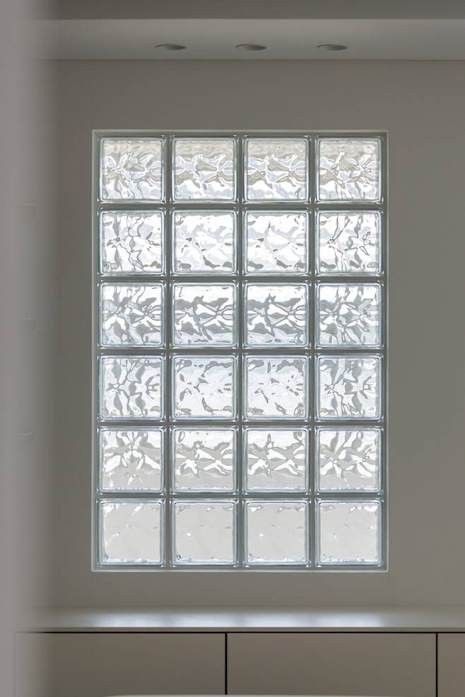 뒤쪽의 세탁실과의 공간 분리를 위해 놔두었던 가벽이 좁은 주방을 더 답답하게 보이게 할 우려가 있기에 가벽의 상부는 유리블록을 시공하여 개방감을 가져갈 수 있었어요.