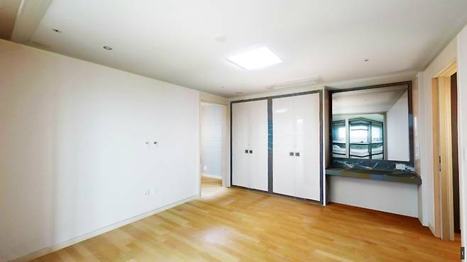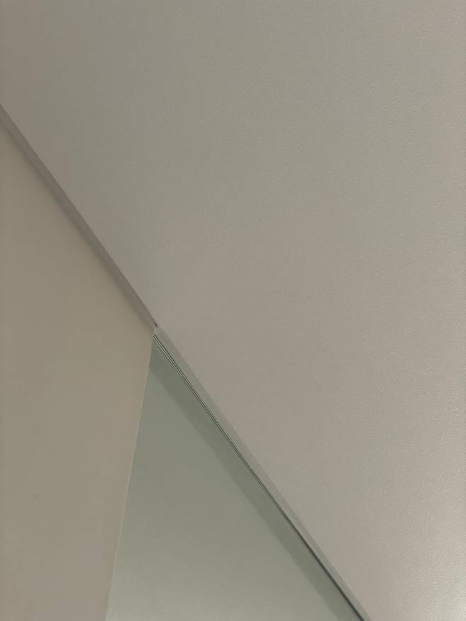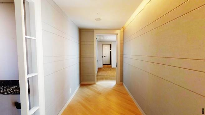 (정확히 기존 안방의 벽 끝에서 촬영한 사진) 기존 침실의 노출된 몰딩들도 확인해 주세요.