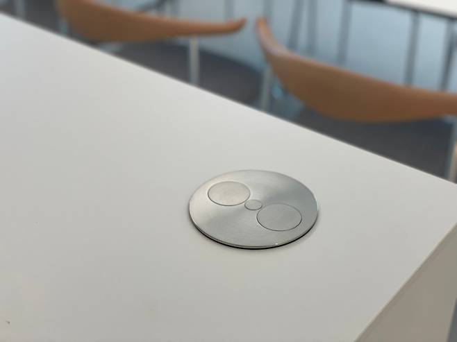 주방에는 여러 가지 가전이 필요하기 때문에 콘센트는 필수로 들어가야만 하는데, 일반적인 디자인의 콘센트 대신 가운데의 작은 원을 누르고 뚜껑을 돌리면 코드를 꼽을 수 있는 구멍이 나오는 유니크한 제품으로 셀렉 해드렸어요 ^^