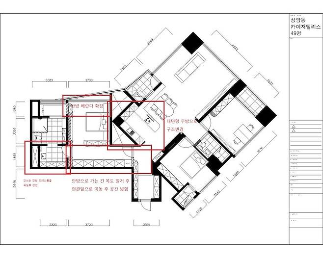 한눈에 봐도 앞의 비포사진과 비교했을 때 안방의 실사용 면적이 넓어짐이 드러나요.