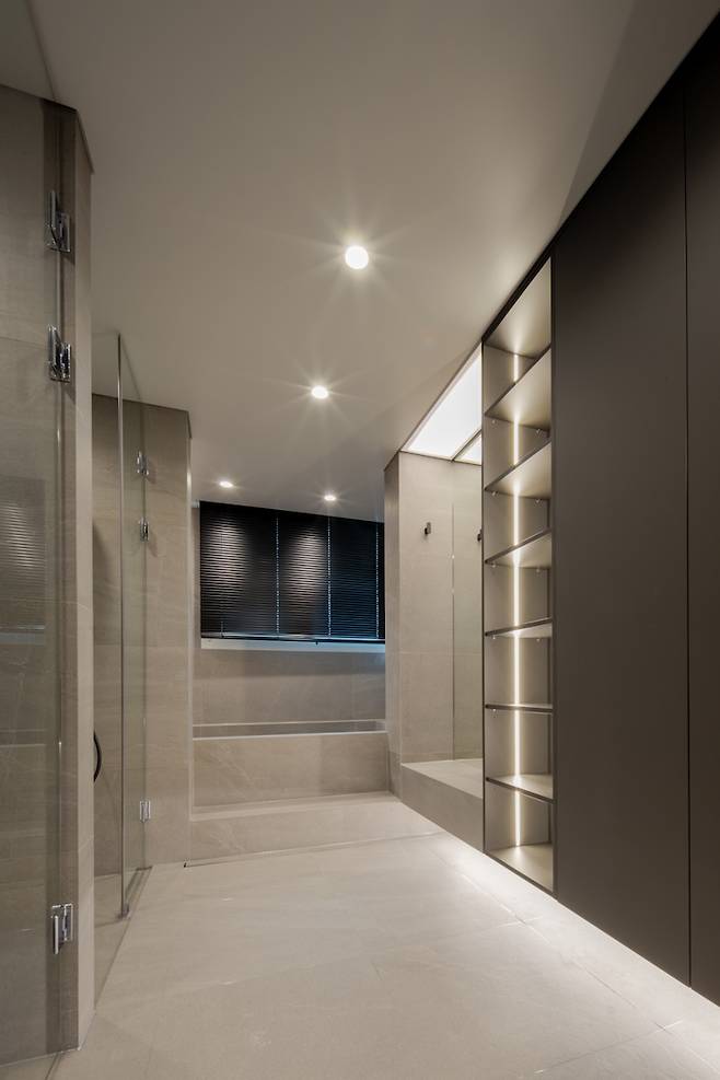 분위기로 압도한다는 설명이 딱 어울리는 널찍한 안방 욕실입니다.