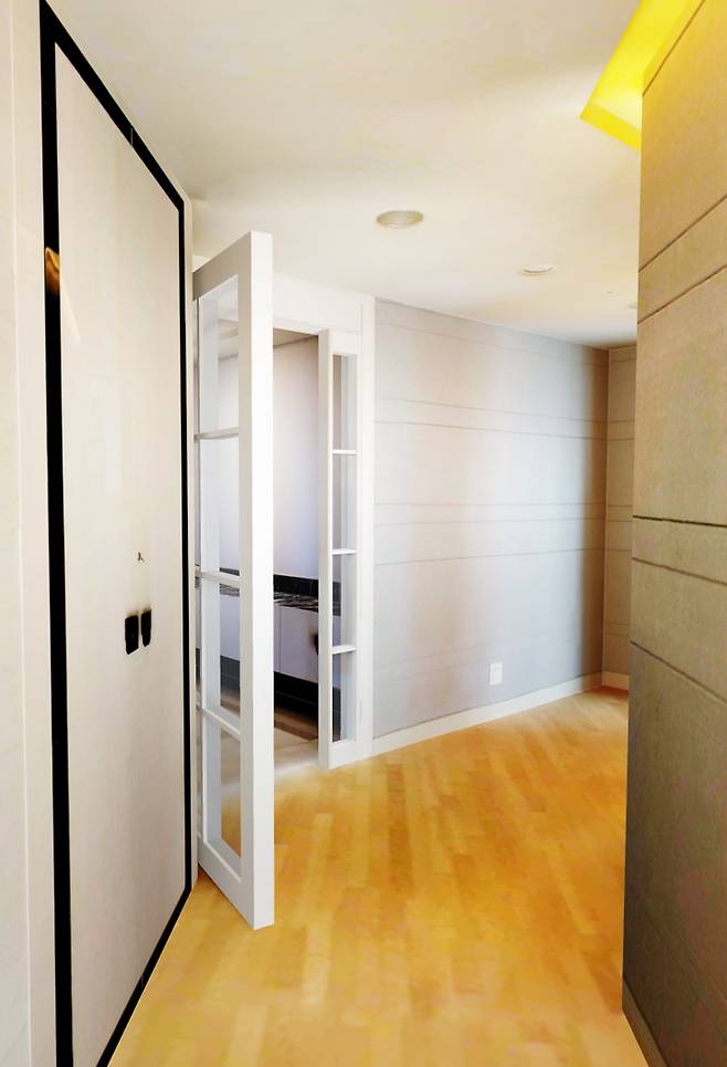 한눈에 봐도 앞의 비포사진과 비교했을 때 안방의 실사용 면적이 넓어짐이 드러나요.