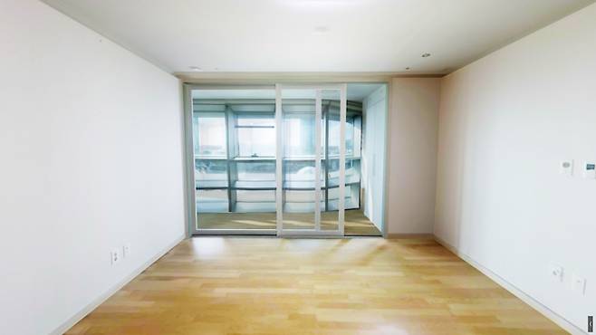 불필요하게 긴 복도와 더불어 기본 아파트 구조에 포함된 침실 베란다 때문에 부부 침실의 전용 면적이 다소 좁았습니다.