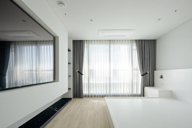 확실히 기존의 침실은 넓은 베란다 때문에 효율성이 현저히 떨어지는 구조였죠?