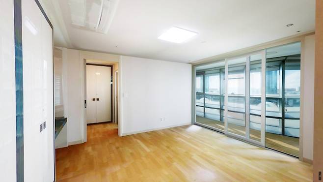 안방 베란다가 존재한다는 점을 기억하고 봐주세요! 실제 안방 면적은 50평대 아파트라고 하기엔 넓지 않은 모습. 확연히 티가 나죠?