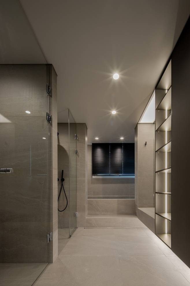 분위기로 압도한다는 설명이 딱 어울리는 널찍한 안방 욕실입니다.