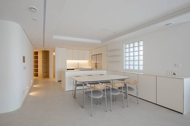 이 아파트 자체가 상당히 각진 레이아웃을 가지고 있어 라운딩을 여러 군데에 활용해 기존의 단점을 상쇄시켰습니다.
