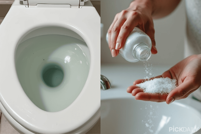 변기 청소에도 소금을 사용하면 좋다. 변기에 소금을 1/3컵 정도 넣고, 따뜻한 물을 넣어 소금이 잘 녹을 수 있도록 해준다. 샤워기를 이용하면 따뜻한 물을 채워넣기 용이하며, 샤워기의 수압으로인해 소금이 자동으로 섞여 편리하다. 소금물이 담긴 변기를 30분 정도 놔둬주면, 소금의 살균 효과로 세균이 증식하는 것을 막을 수 있다. 찌든때가 많다면 변기 안쪽을 청소 솔로 가볍게 문질러주면 청소와 악취를 동시에 제거할 수 있다.