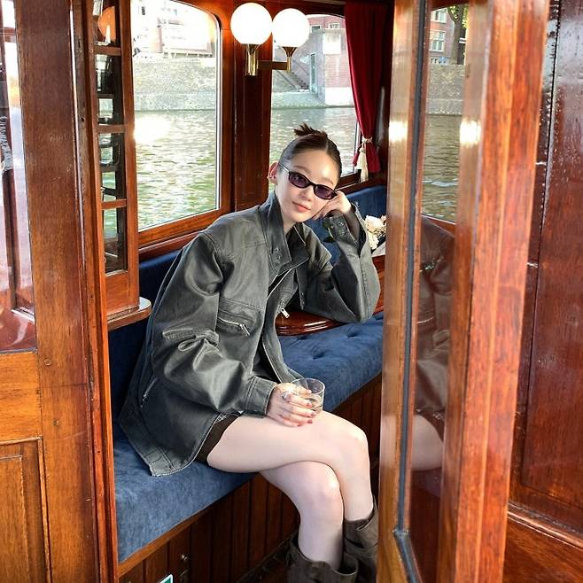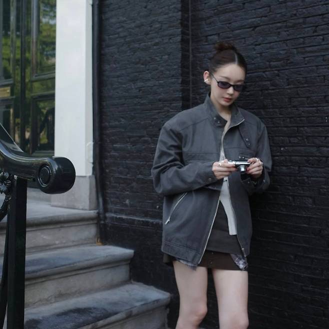 강민경님은 힙한 무드로 해당 자켓을 스타일링했는데요. 데님 팬츠와 블랙 이너를 매치하여 시크하면서도 세련된 룩을 완성했습니다. 선글라스와 액세서리를 더해 포인트를 주는 센스도 잊지 않았죠.